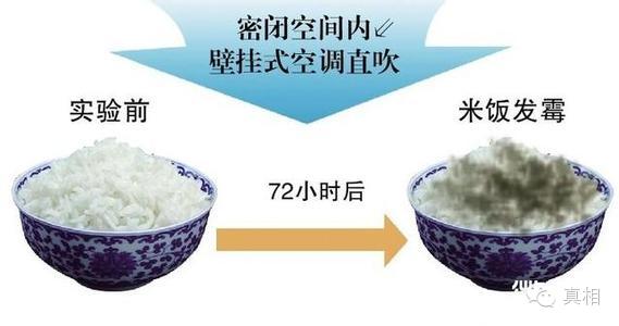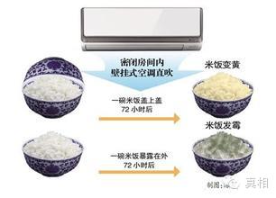 空调微生物超标会导致什么样的后果?为直观地说明这个问题,复旦大学公共卫生学院宋伟民教授做了两个实验。录像显示,实验者将两碗米饭放置在密闭房间内,近距离直对着一台正在运转的壁挂式空调,其中一碗被盖上,另一碗暴露在外。经过72小时后,实验者打开房间,发现被盖上的米饭发黄,而没被盖上的米饭已长出大团霉块。