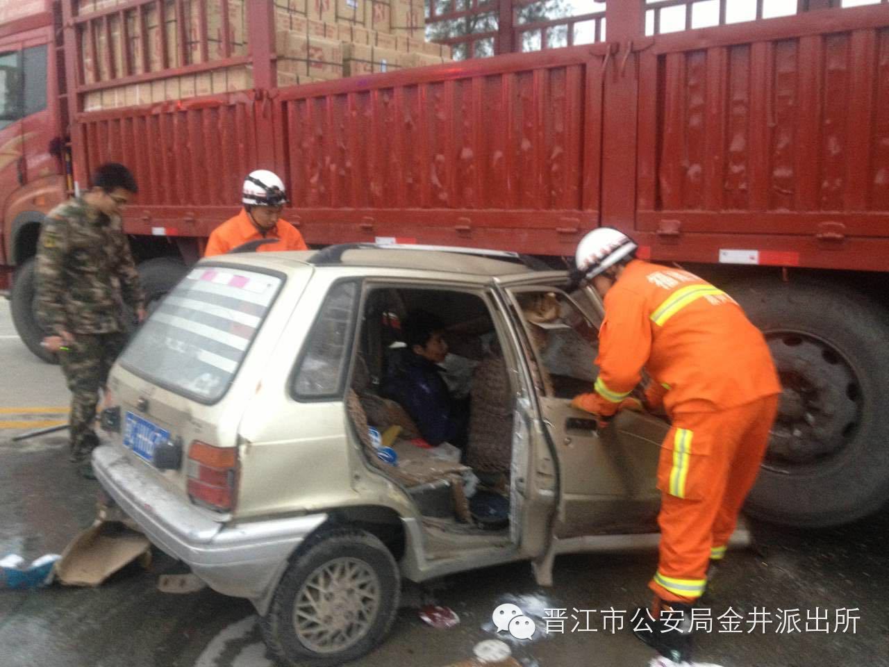 [本地新闻] 晋江金井奥拓车与大货车相撞 司机侥幸捡回一条命(多图) |